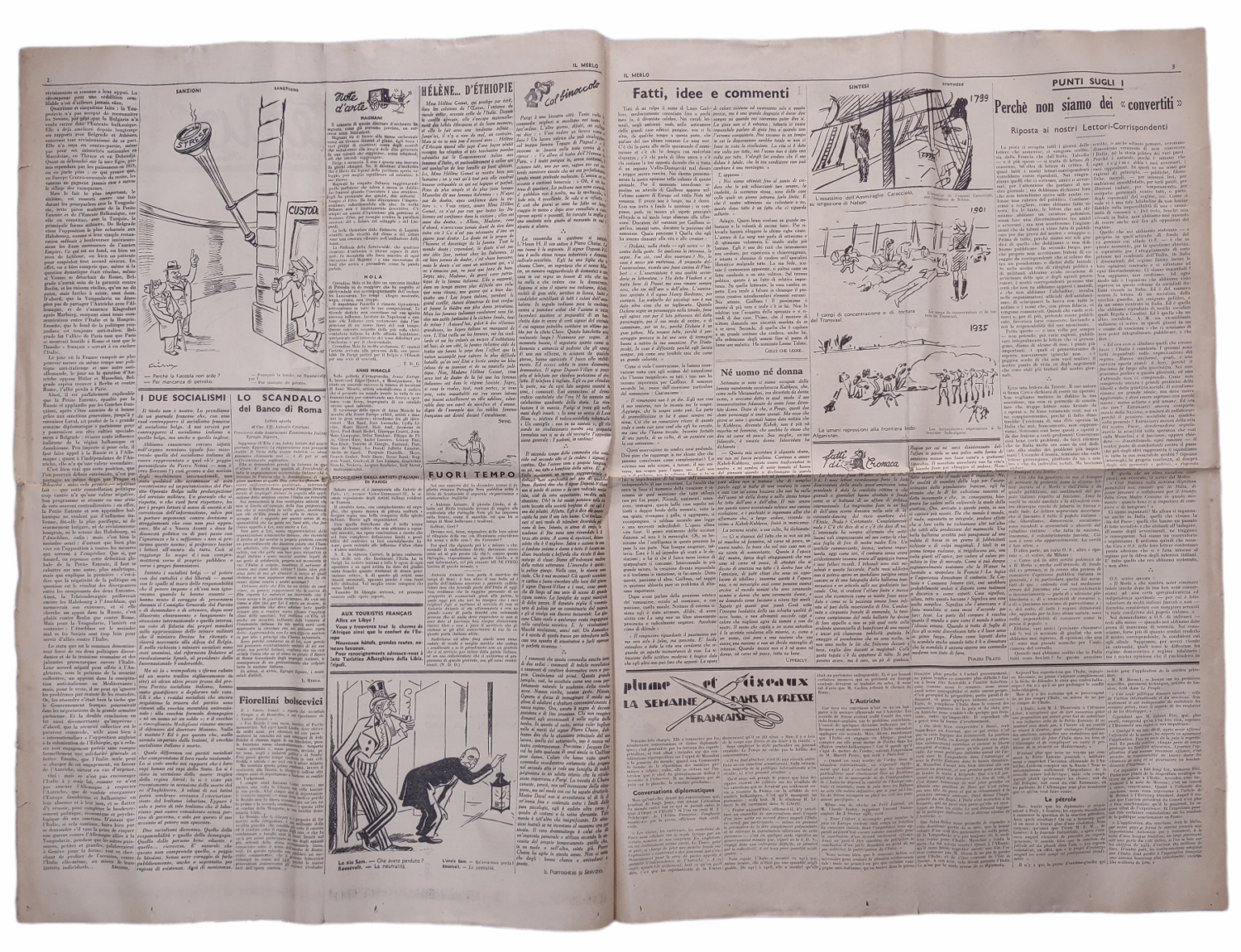 | Descrizione: | Rivista satirica clandestina fascista edita in Francia (Parigi) dall’editore Lotario Vecchi, di Alberto Giannini (giornalista convertito al fascismo). Ettore Carozzo, cognato dell’editore Lotario Vecchi ed a capo dell’attività editoriale di famiglia in Francia, era un noto antifascista e stampava in Francia le opere di Italiani antifascisti come Sturzo, Nitti e Salvemini e si crede anche materiale antifascista da diffondere clandestinamente in Italia. Quindi l’editore Lotario Vecchi venne convocato in Italia al Ministero degli Interni dove subì un ricatto: se in Francia stampava autori Italiani antifascisti, allora doveva stampare anche per i fascisti. Nacque così la rivista clandestina Il Merlo edita clandestinamente in Francia. Rivista in lingua francese e italiana. |