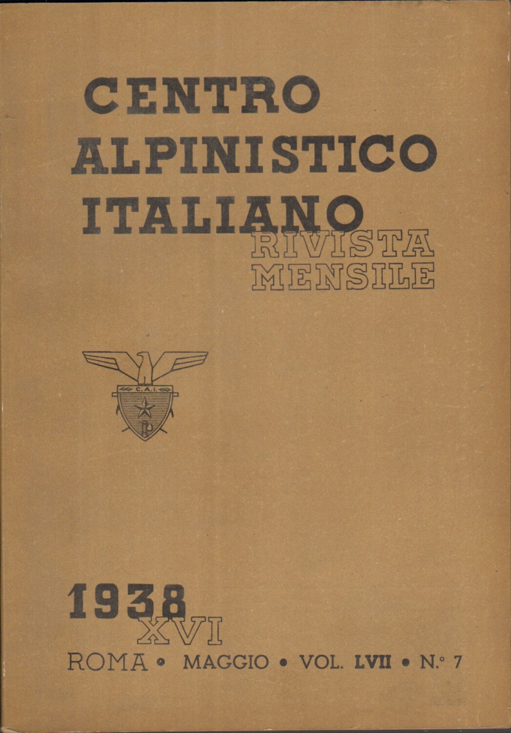 Rivista Centro Alpinistico Italiano n. 7 anno XVI – Maggio 1938 ed. Club Alpino Italiano