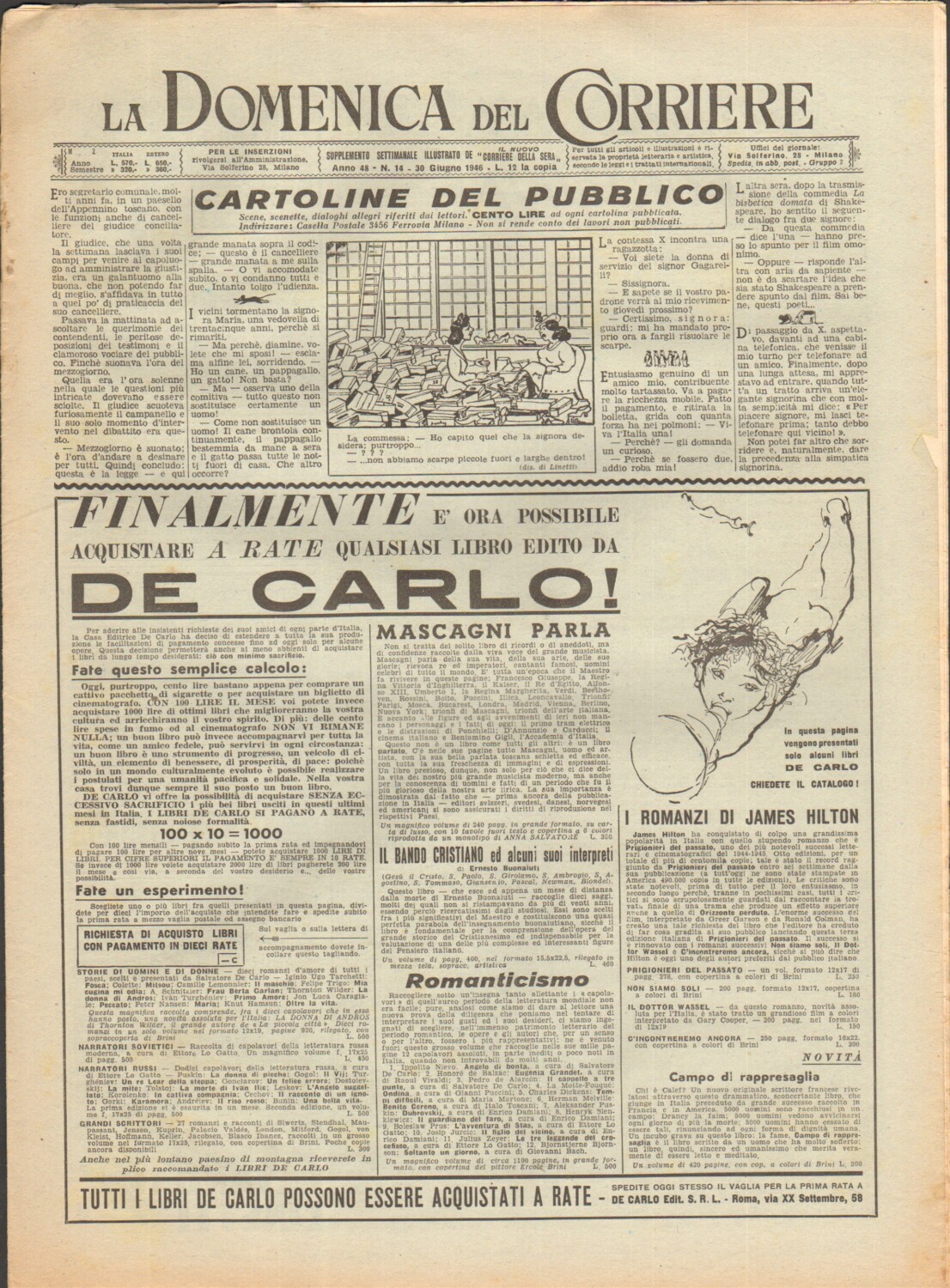 Rivista LA DOMENICA DEL CORRIERE 30 Giugno 1946