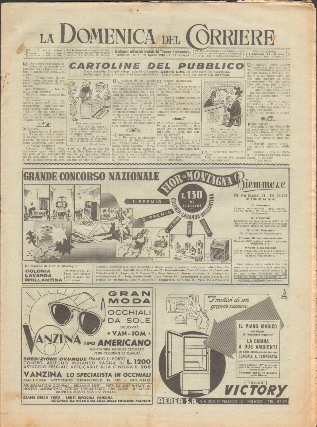 Rivista LA DOMENICA DEL CORRIERE 28 Aprile 1946