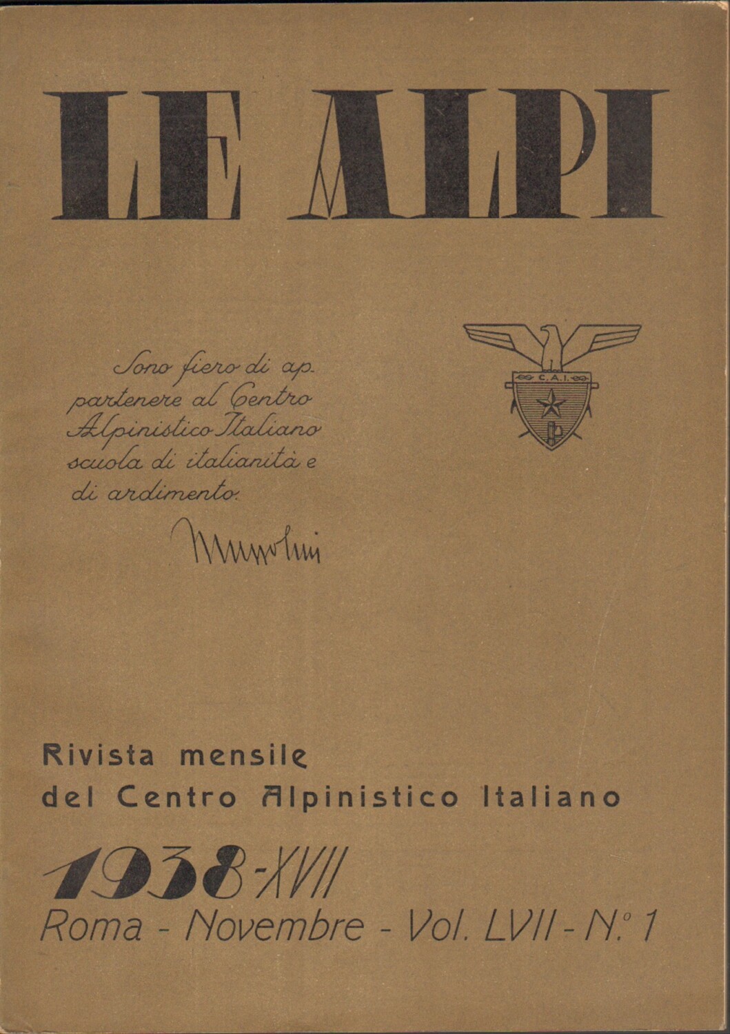| Titolo: | Rivista Le Alpi n. 1 anno XVII – Novembre 1938 ed. Club Alpino Italiano |