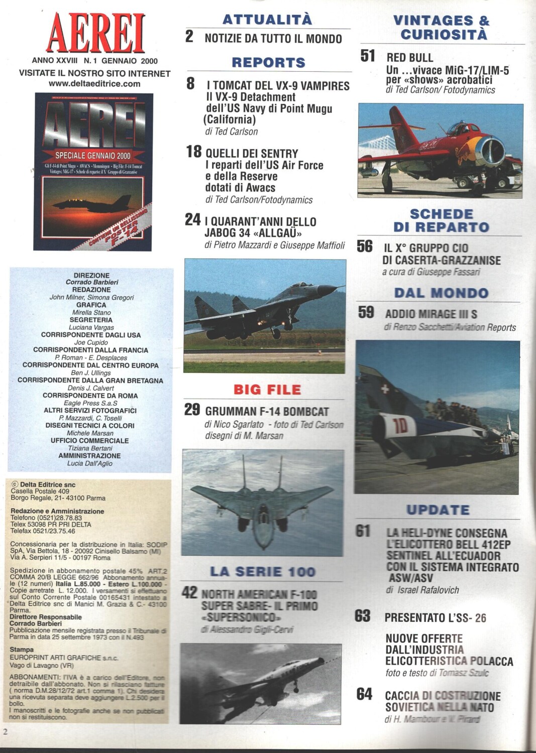 | Titolo: | Rivista Aerei n. 1 – Gennaio 2000 – In copertina Grumman F-14 Tomcat ed. Delta – Con Poster |