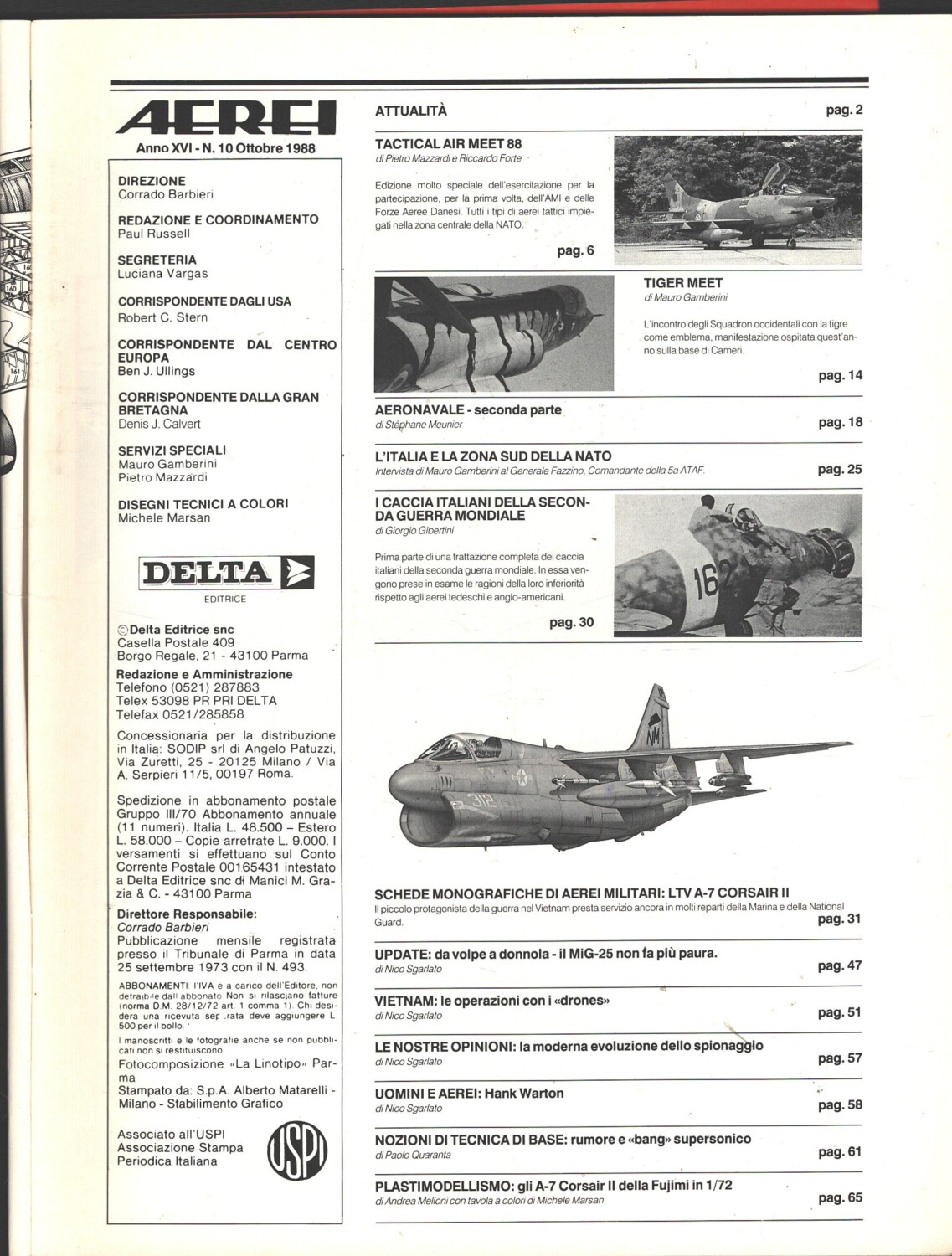| Titolo: | Rivista Aerei n. 10 – Ottobre 1988 – In copertina A-7 Corsair II ed. Delta |