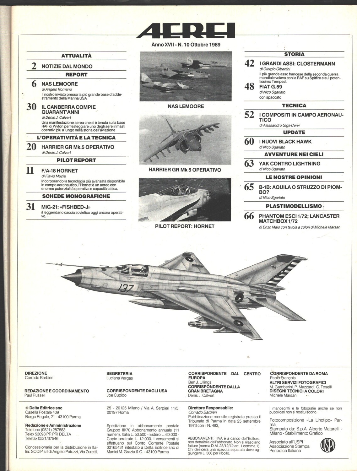 Rivista Aerei n. 10 – Ottobre 1989 – In copertina Harrier GR Mk 5 ed. Delta