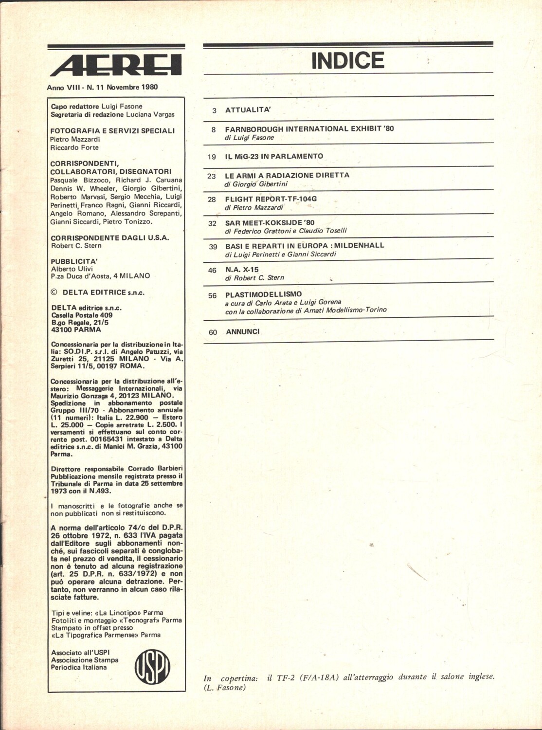 | Titolo: | Rivista Aerei n. 11 – Novembre 1980 – In copertina TF-2 (F/A-18A) ed. Delta |