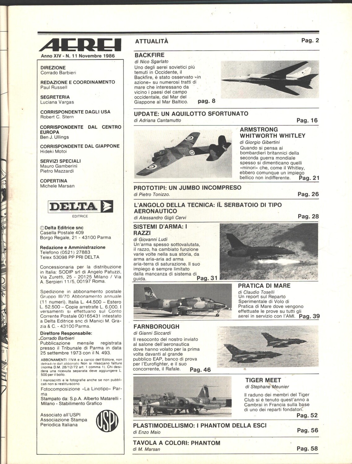 | Titolo: | Rivista Aerei n. 11 – Novembre 1986 – In copertina pilota di caccia ed. Delta |