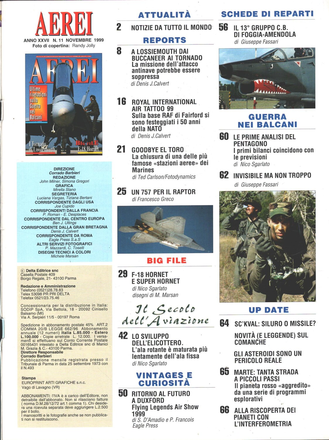 | Titolo: | Rivista Aerei n. 11 – Novembre 1999 – In copertina Panavia Tornado ed. Delta |