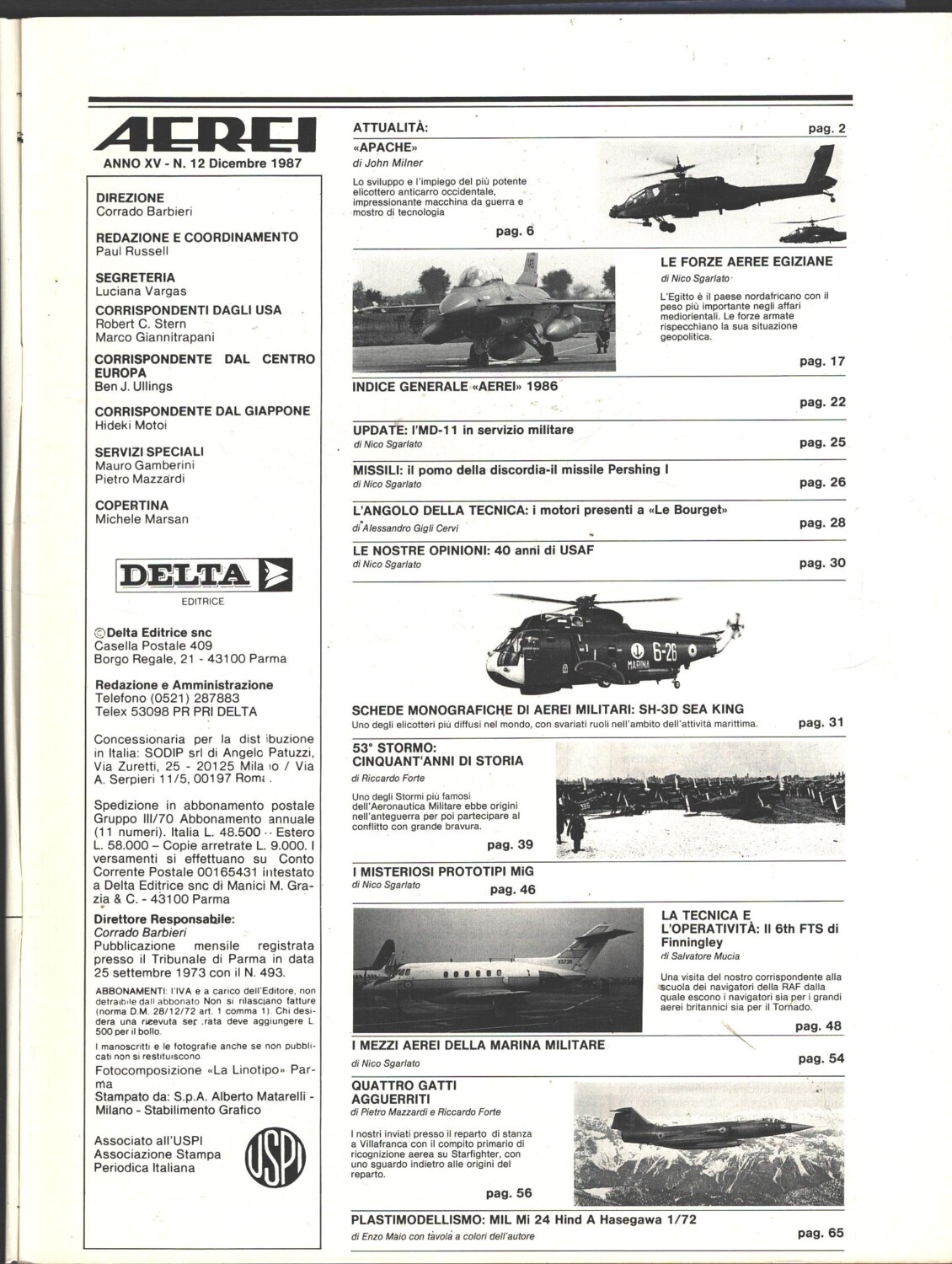 | Titolo: | Rivista Aerei n. 12 – Dicembre 1987 – In copertina elicottero Sikorsky SH-3D Sea King ed. Delta |