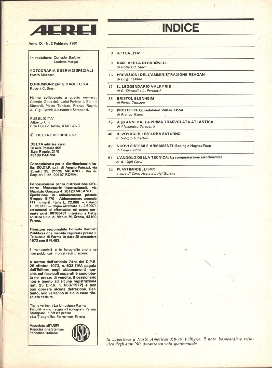 Rivista Aerei n. 2 – Febbraio 1981 – In copertina North American XB-70 Valkyrie ed. Delta