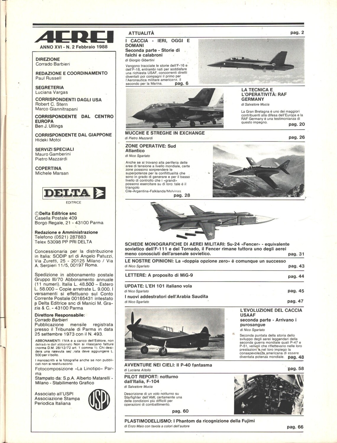| Titolo: | Rivista Aerei n. 2 – Febbraio 1988 – In copertina Sukhoi Su-24 Fencer ed. Delta |