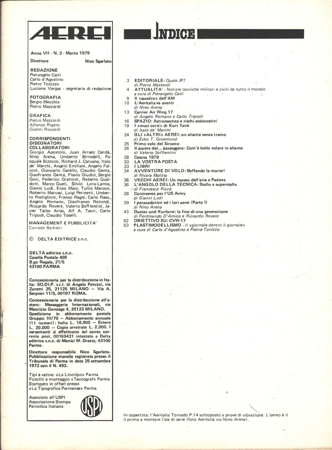 Rivista Aerei n. 3 – Marzo 1979 – In copertina Aeritalia Tornado P.14 ed. Delta