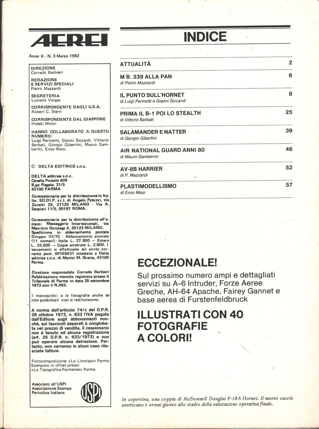 | Titolo: | Rivista Aerei n. 3 – Marzo 1982 – In copertina McDonnell Douglas F-18A Hornet ed. Delta |