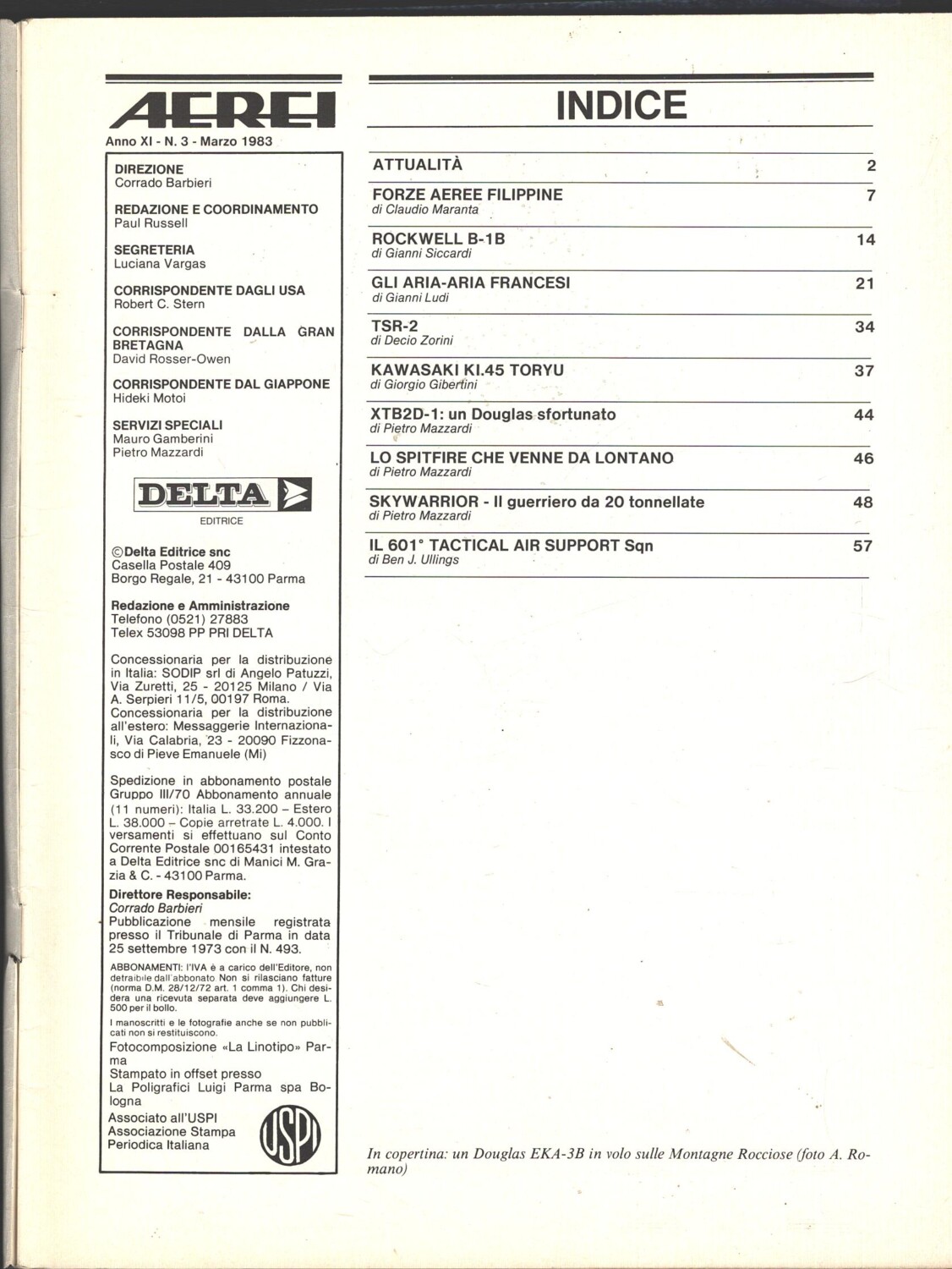 | Titolo: | Rivista Aerei n. 3 – Marzo 1983 – In copertina Douglas EKA-3B ed. Delta |
