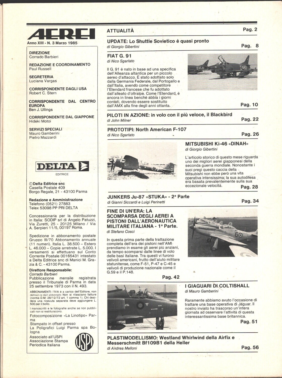 | Titolo: | Rivista Aerei n. 3 – Marzo 1985 ed. Delta |