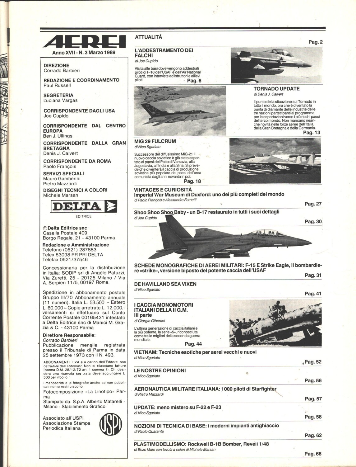 | Titolo: | Rivista Aerei n. 3 – Marzo 1989 – In copertina General Dynamics F-16 Fighting Falcon ed. Delta |