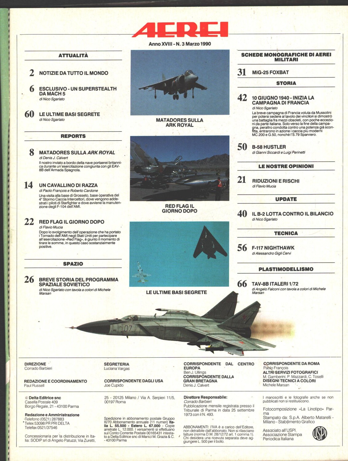 | Titolo: | Rivista Aerei n. 3 – Marzo 1990 – In copertina British Aerospace Sea Harrier ed. Delta |