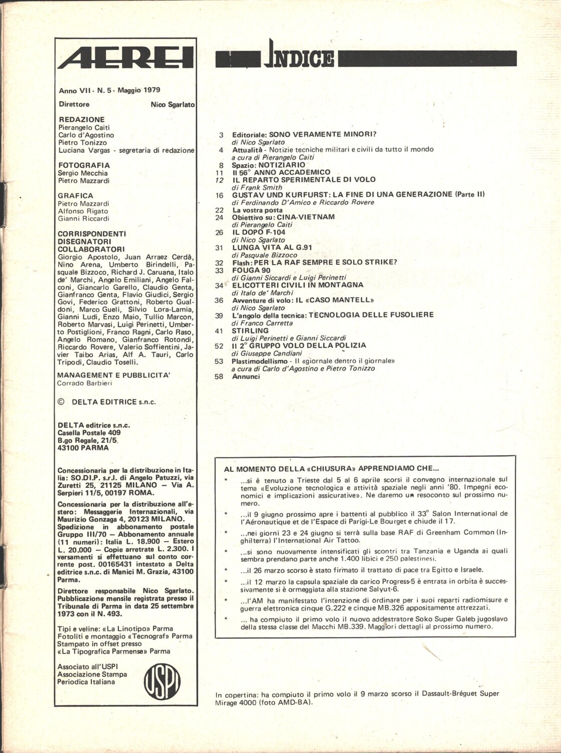 | Titolo: | Rivista Aerei n. 5 – Maggio 1979 – In copertina Dassault Breguet Super Mirage 4000 ed. Delta |