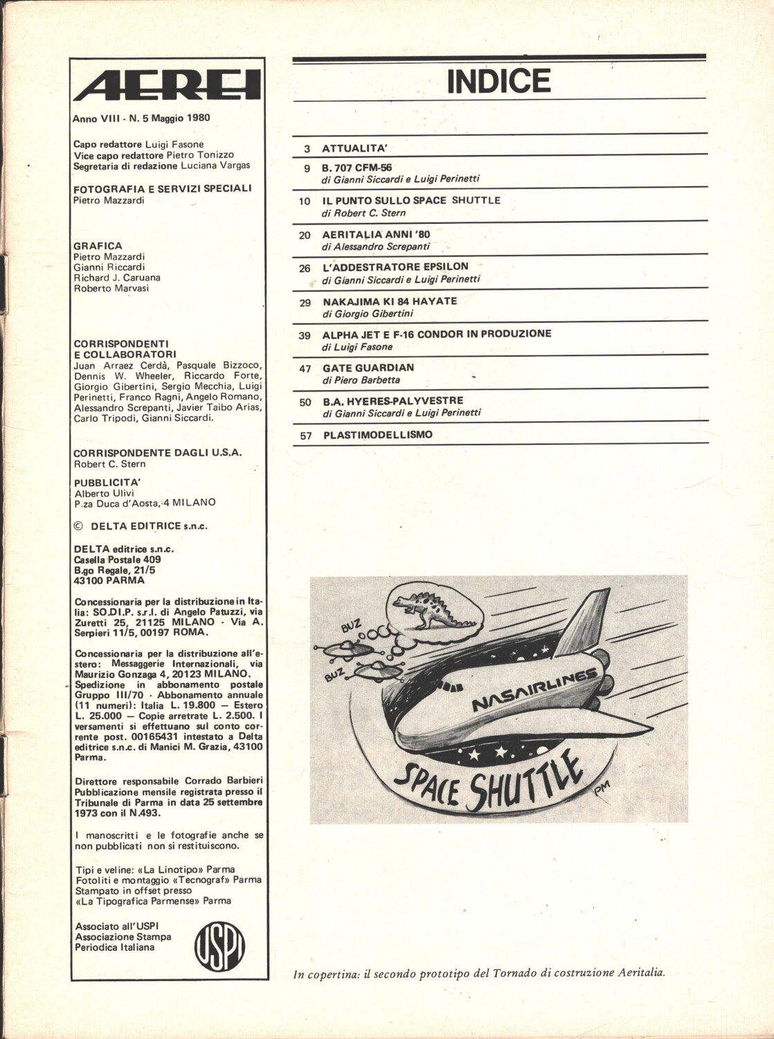 | Titolo: | Rivista Aerei n. 5 – Maggio 1980 – In copertina Tornado Aeritalia ed. Delta |