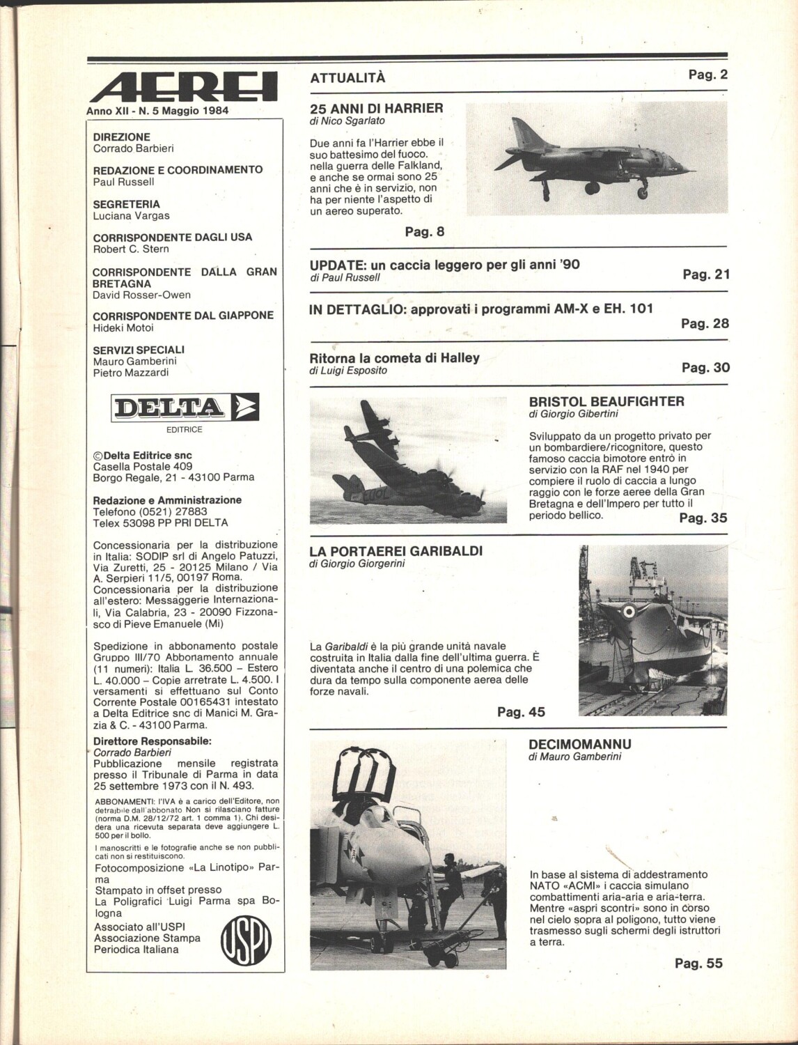 | Titolo: | Rivista Aerei n. 5 – Maggio 1984 – In copertina Lockheed F-104 Starfighter ed. Delta |