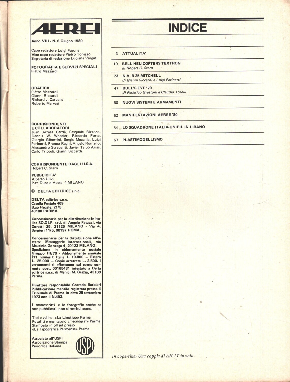 | Titolo: | Rivista Aerei n. 6 – Giugno 1980 – In copertina AH-1T ed. Delta |