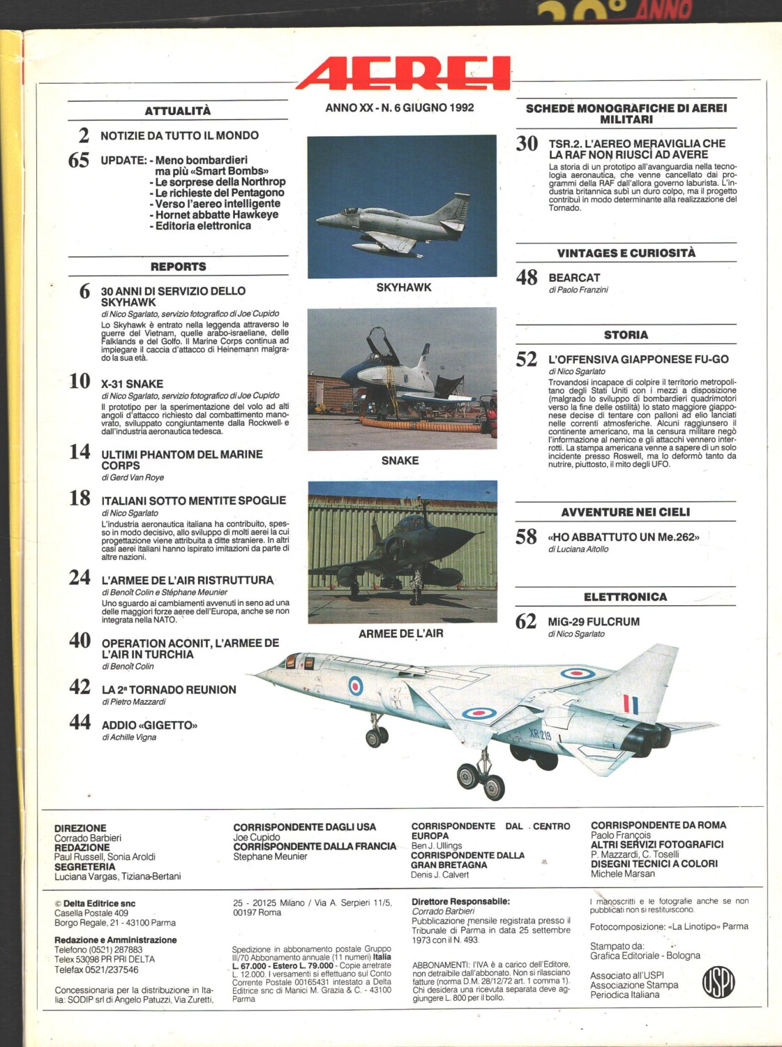 Rivista Aerei n. 6 – Giugno 1992 – In copertina Dassault Mirage 2000 ed. Delta