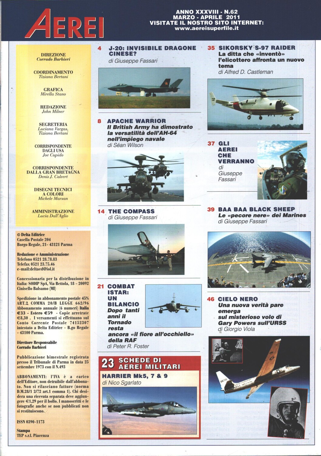 | Titolo: | Rivista Aerei n. 62 – Marzo Aprile 2011 – In copertina Lockheed U-2 ed. Delta |