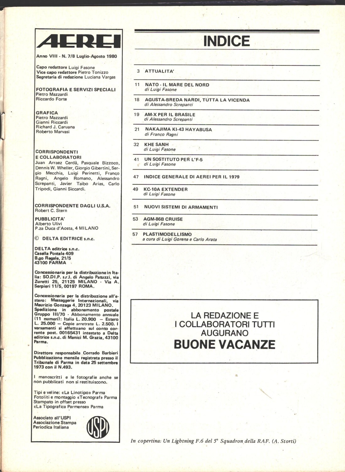 Rivista Aerei n. 7/8 – Luglio Agosto 1980 – In copertina Lightning F.6 ed. Delta