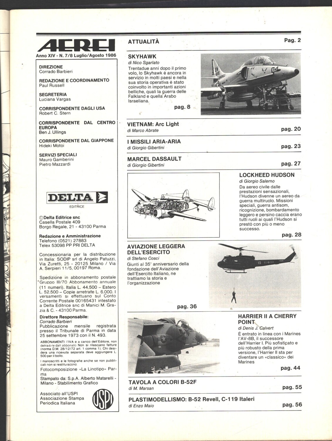 | Titolo: | Rivista Aerei n. 7/8 – Luglio Agosto 1986 – In copertina AV-8B Harrier II ed. Delta |