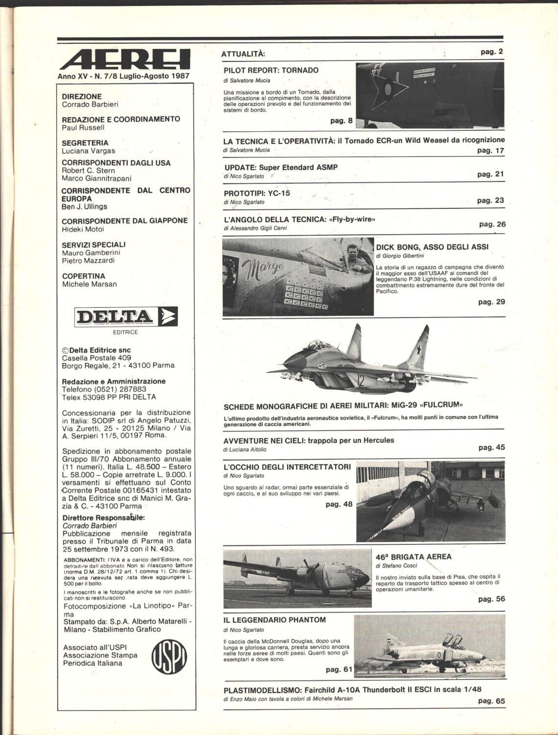 | Titolo: | Rivista Aerei n. 7/8 – Luglio Agosto 1987 – In copertina MiG-29 Fulcrum ed. Delta |