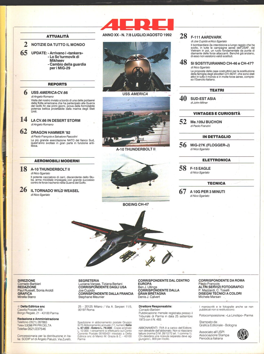 | Titolo: | Rivista Aerei n. 7/8 – Luglio Agosto 1992 – In copertina General Dynamics F-111 Aardvark ed. Delta |