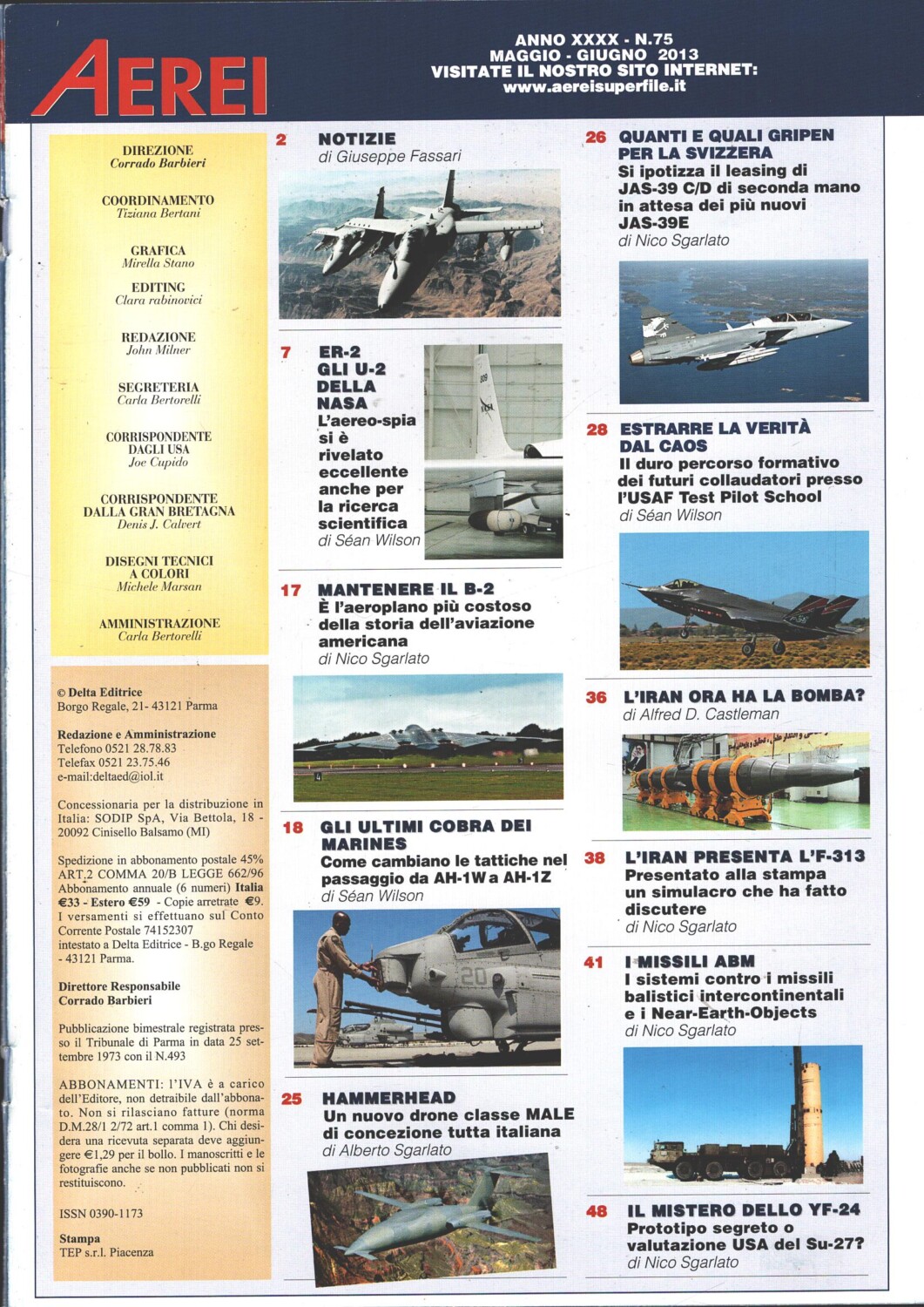 | Titolo: | Rivista Aerei n. 75 – Maggio Giugno 2013 – In copertina Lockheed ER-2 ed. Delta |