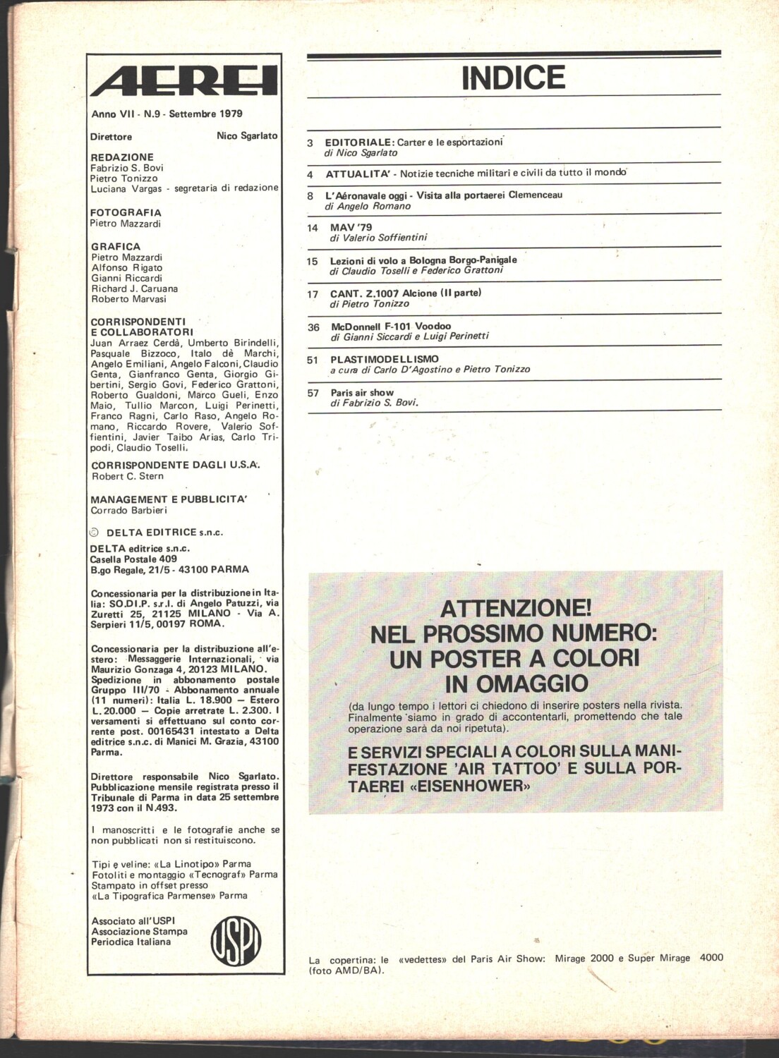 Rivista Aerei n. 9 – Settembre 1979 – In copertina Mirage 2000 e Super Mirage 4000 ed. Delta