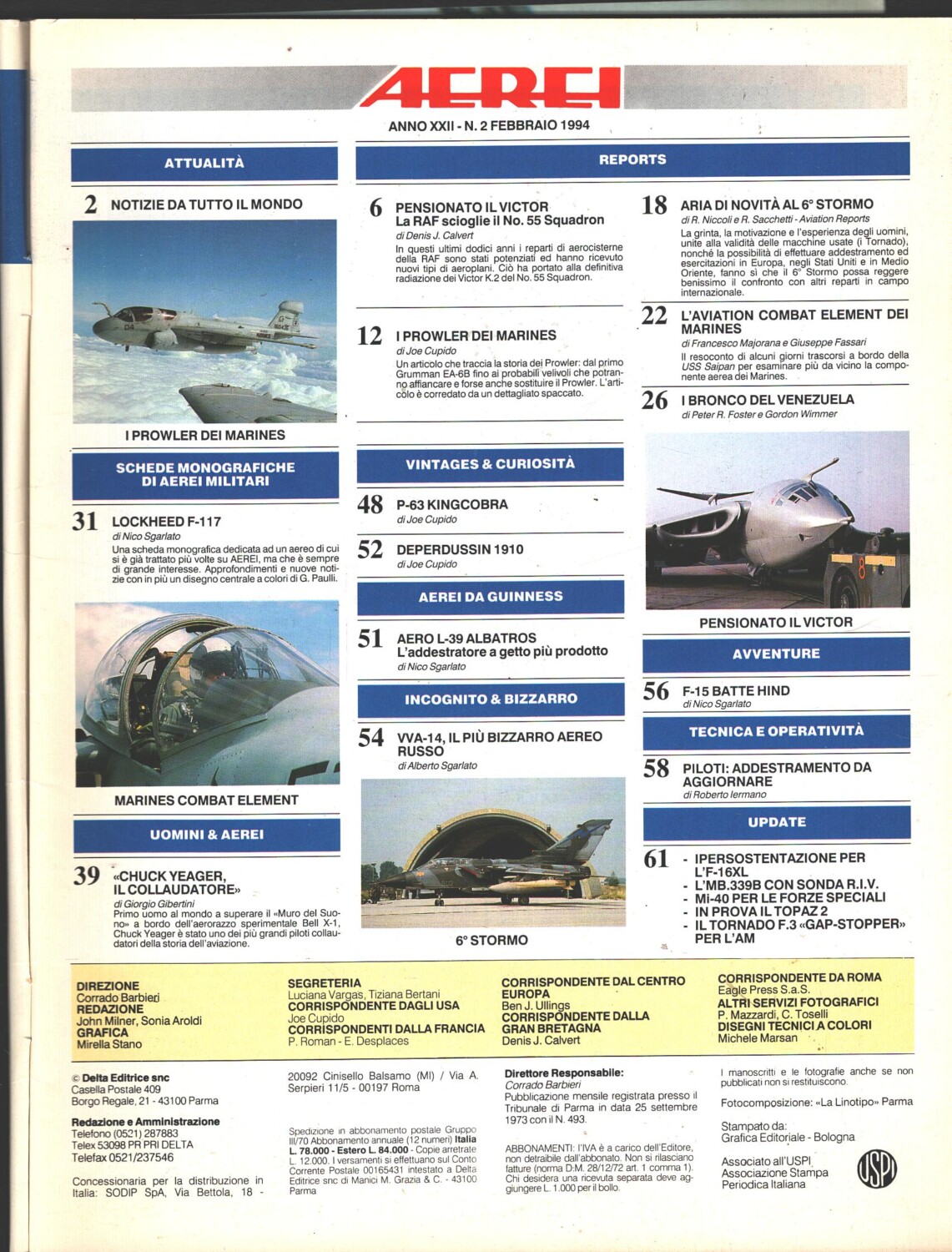 Rivista Aerei n. 2 – Febbraio 1994 – In copertina U.S. Marines ed. Delta – Con Poster