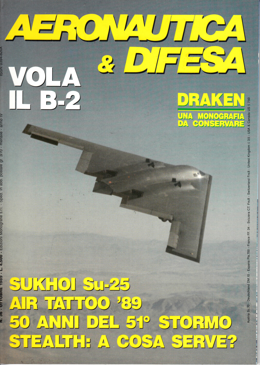 | Titolo: | Rivista Aeronautica & Difesa n. 36 – Ottobre 1989. In copertina Northrop B-2 Bombardiere Invisibile |