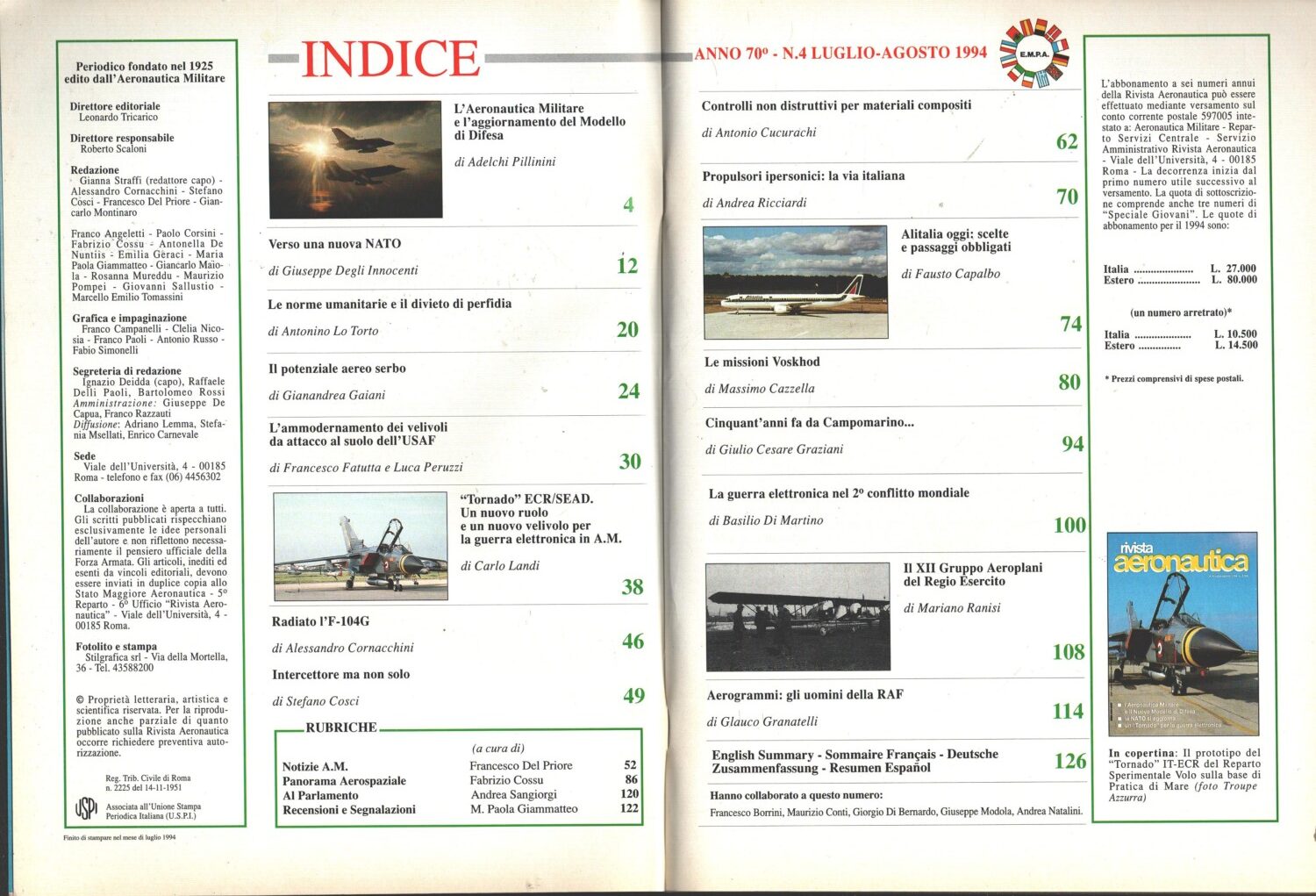 | Titolo: | Rivista Aeronautica n. 4 – Luglio Agosto 1994 – In copertina Tornado IT-ECR ed. Aeronautica Militare |