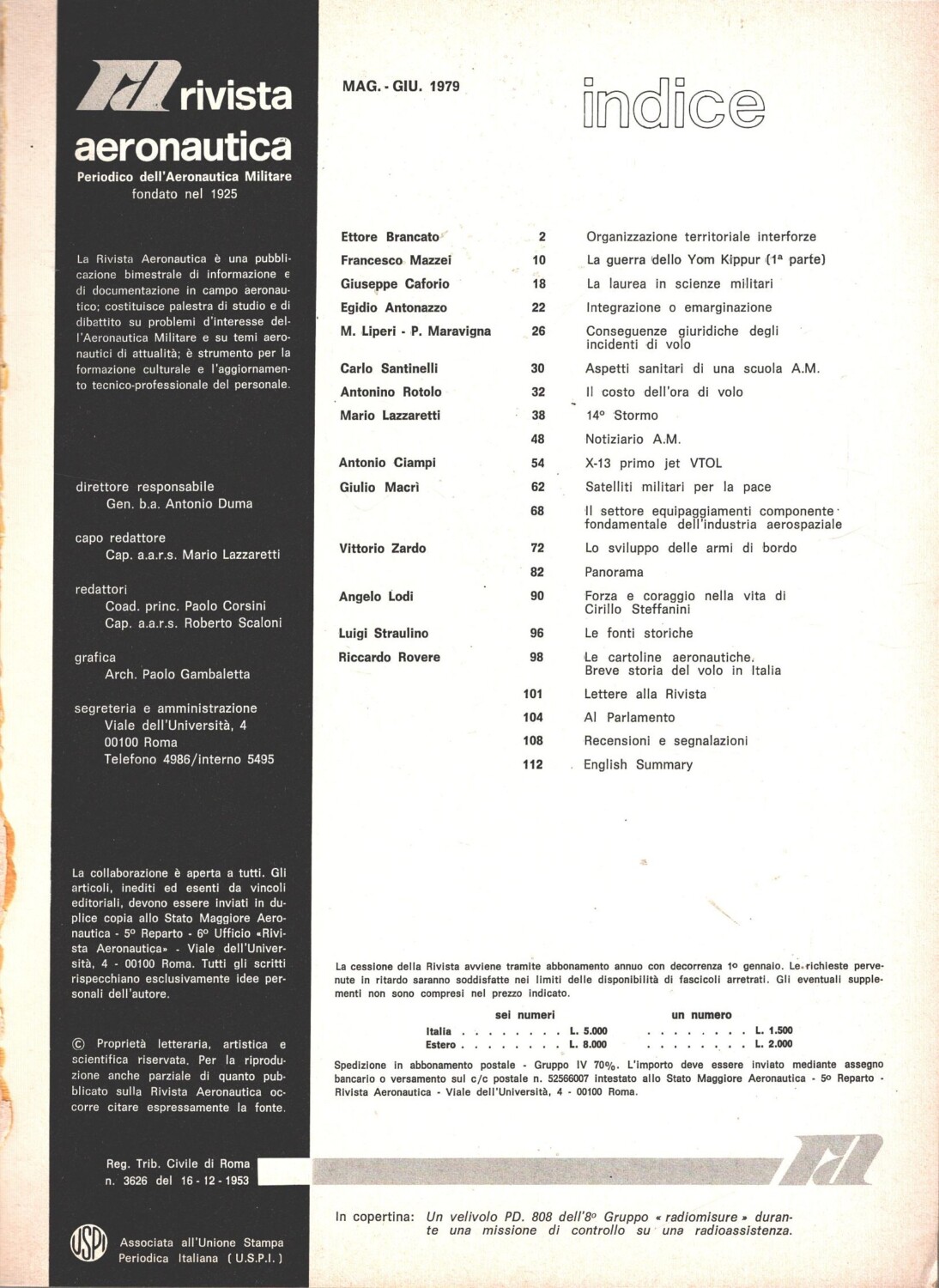 | Titolo: | Rivista Aeronautica n. 3 – Maggio Giugno 1979 – In copertina PD. 808 ed. Aeronautica Militare |