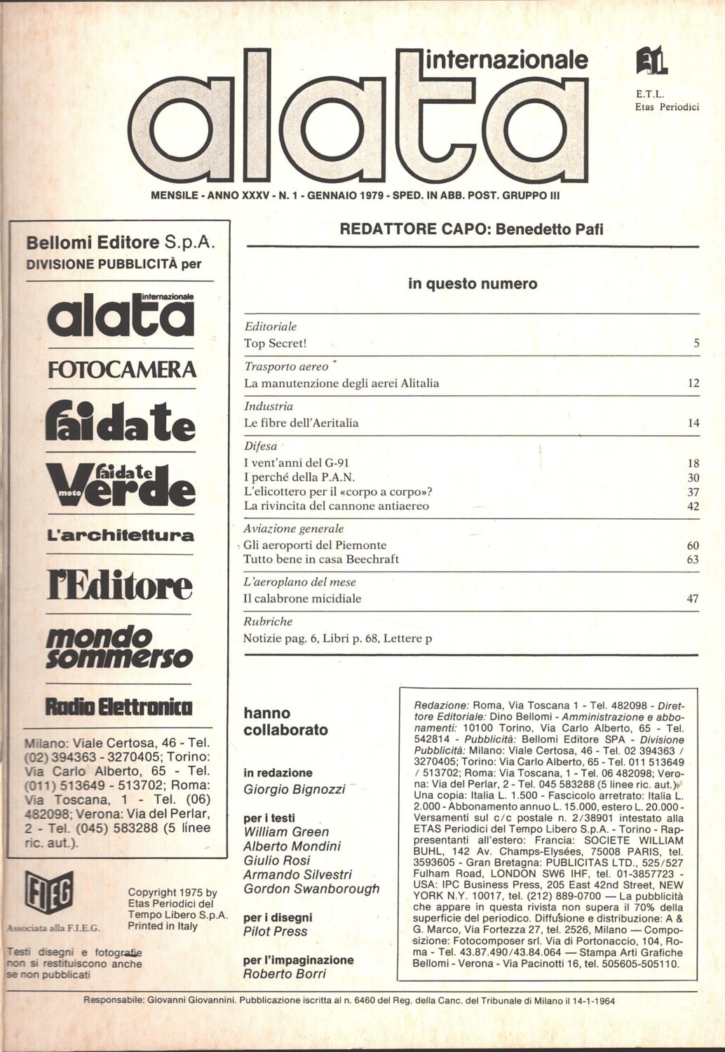 | Titolo: | Rivista Alata internazionale n. 1 – Gennaio 1979 – In copertina Fiat G.91R ed. Ed.A.I. |