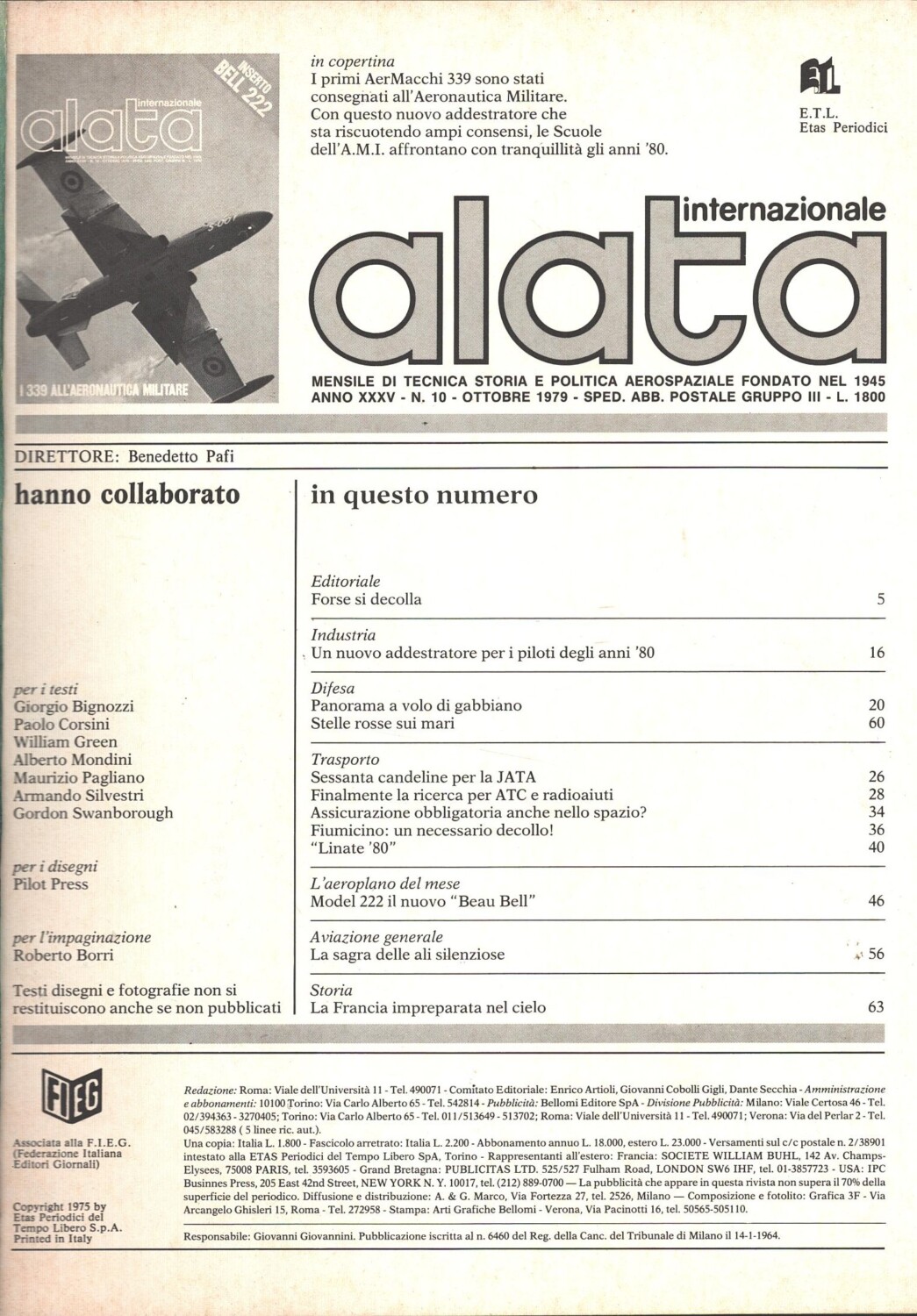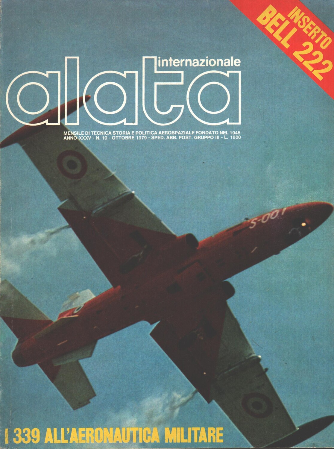 | Titolo: | Rivista Alata internazionale n. 10 – Ottobre 1979 – In copertina Aermacchi MB-339 ed. Ed.A.I. – Con Inserto |