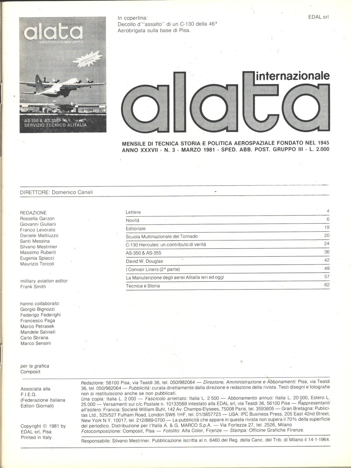 Rivista Alata internazionale n. 3 – Marzo 1981 – In copertina Lockheed C-130H Hercules ed. Ed.A.I.