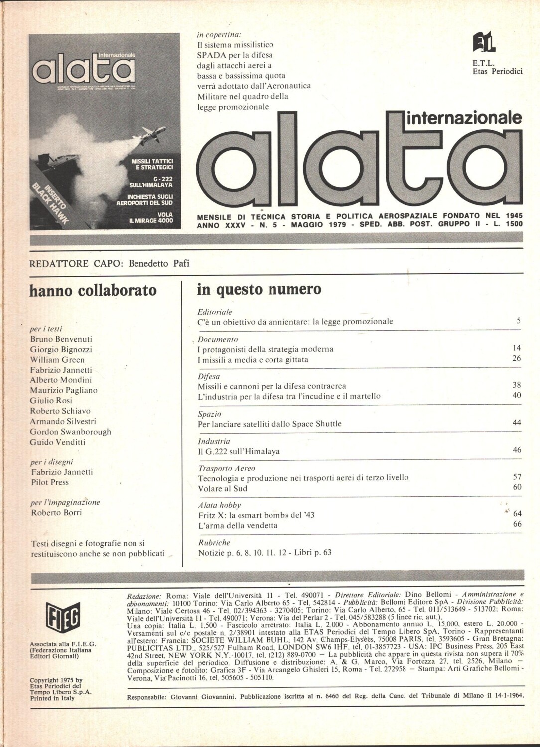 Rivista Alata internazionale n. 5 – Maggio 1979 – In copertina missile Otomat ed. Ed.A.I. – Con Inserto