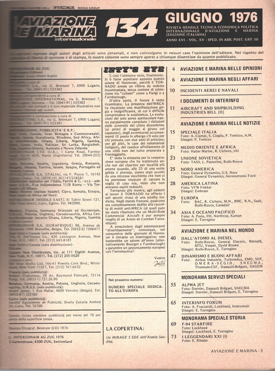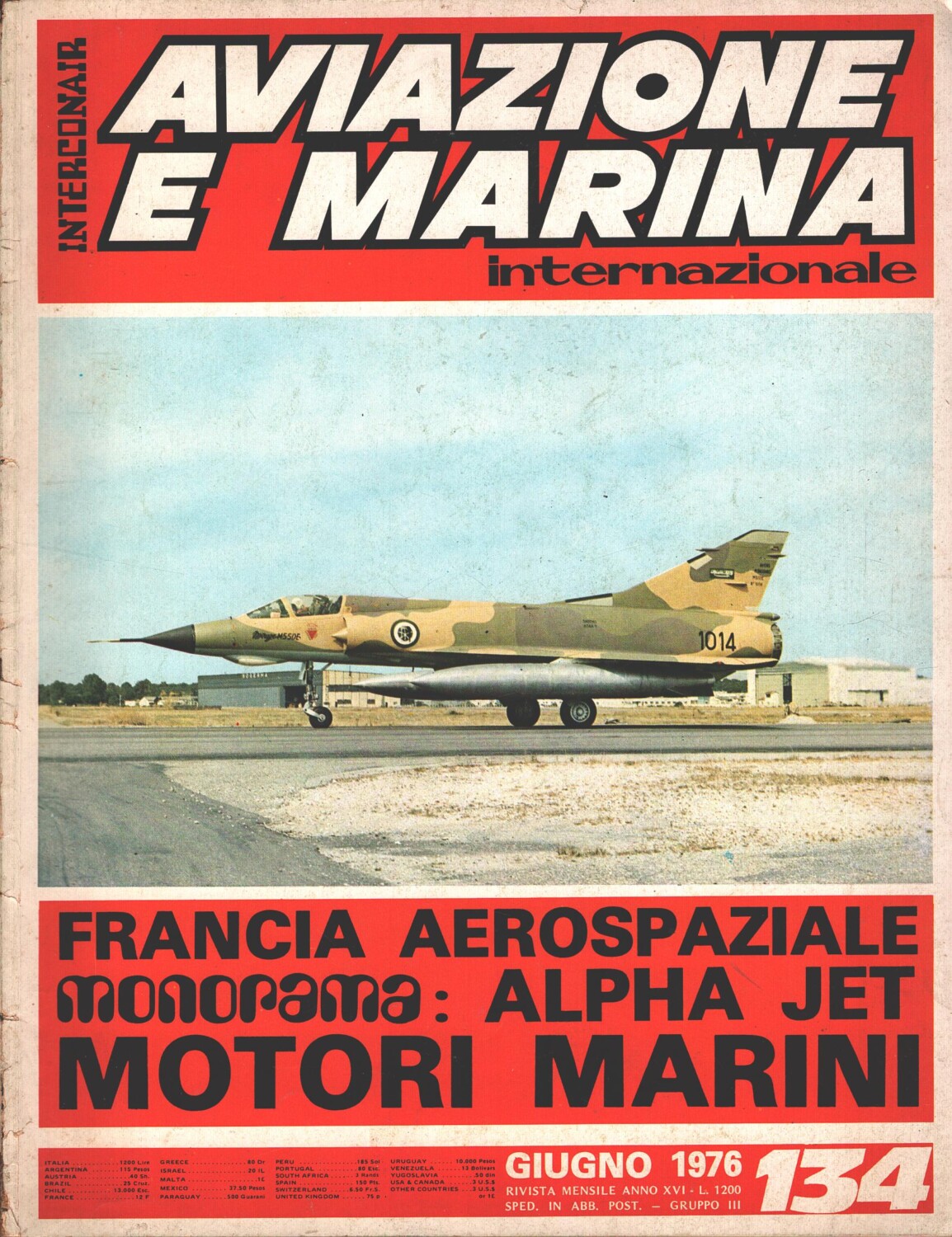 | Titolo: | Rivista Aviazione e Marina n. 134 – Giugno 1976 – In copertina Mirage 5 SDE Arabia Saudita ed. Interconair |