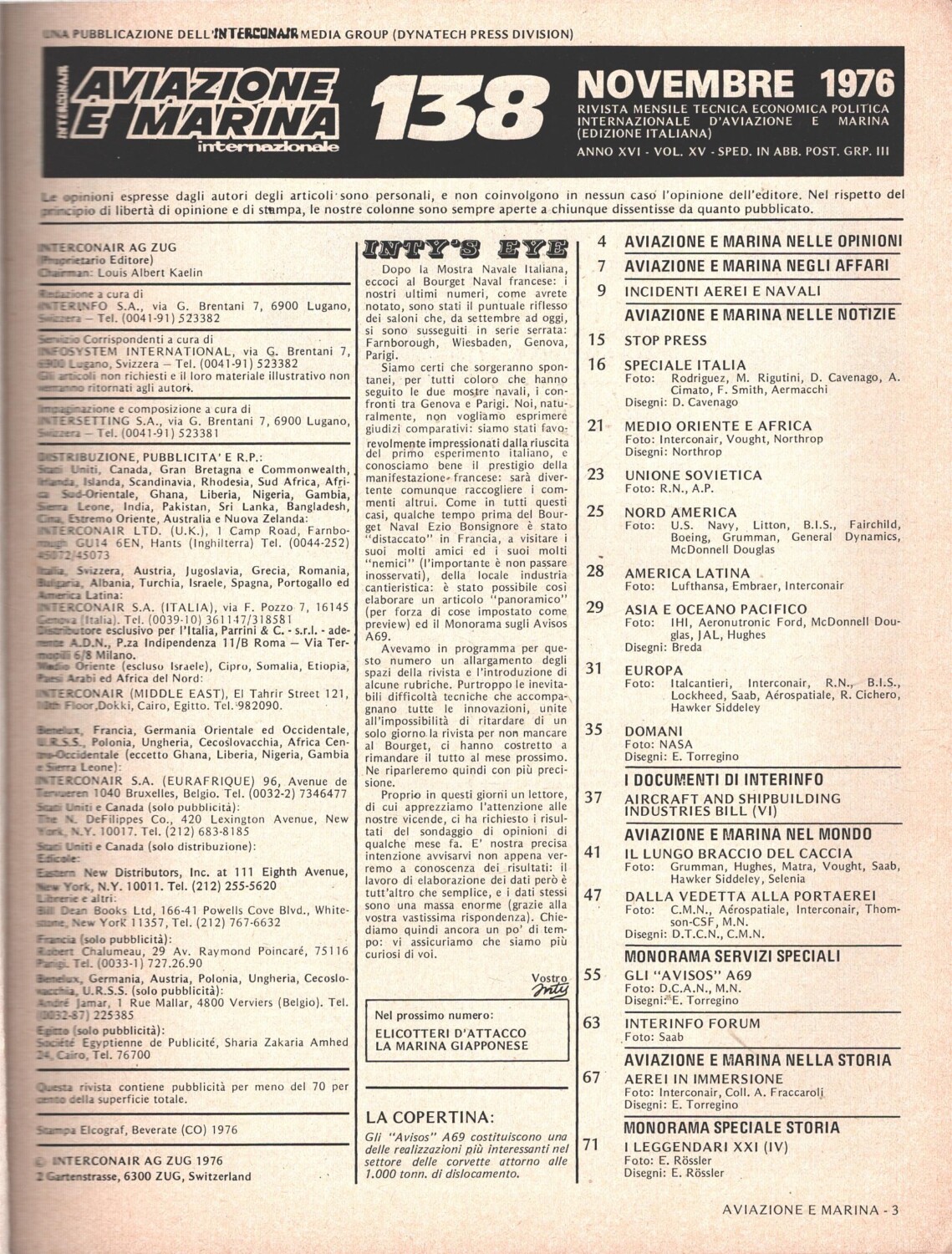 | Titolo: | Rivista Aviazione e Marina n. 138 – Novembre 1976 – In copertina Avisos A69 ed. Interconair |