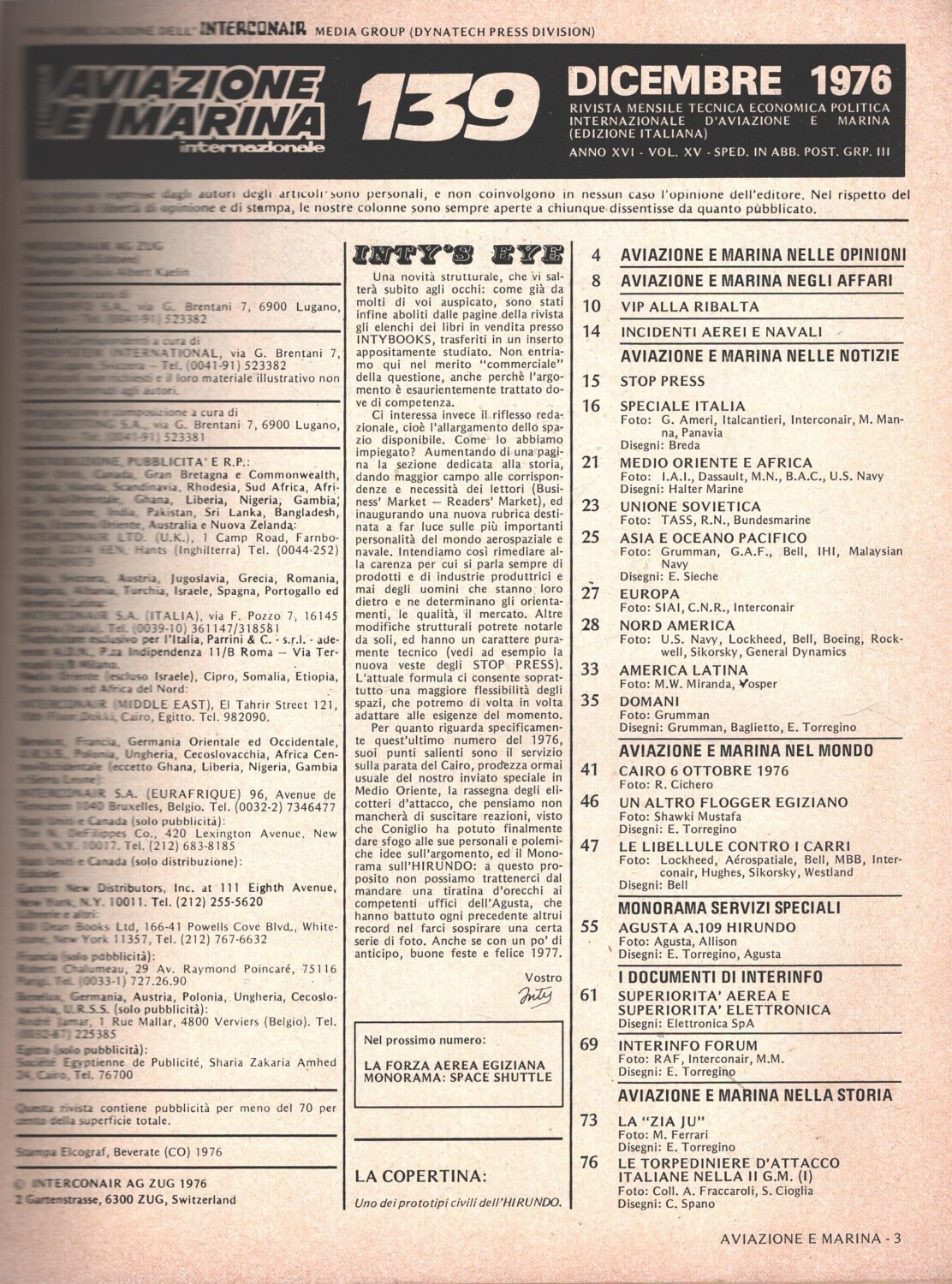 | Titolo: | Rivista Aviazione e Marina n. 139 – Dicembre 1976 – In copertina Hirundo ed. Interconair |