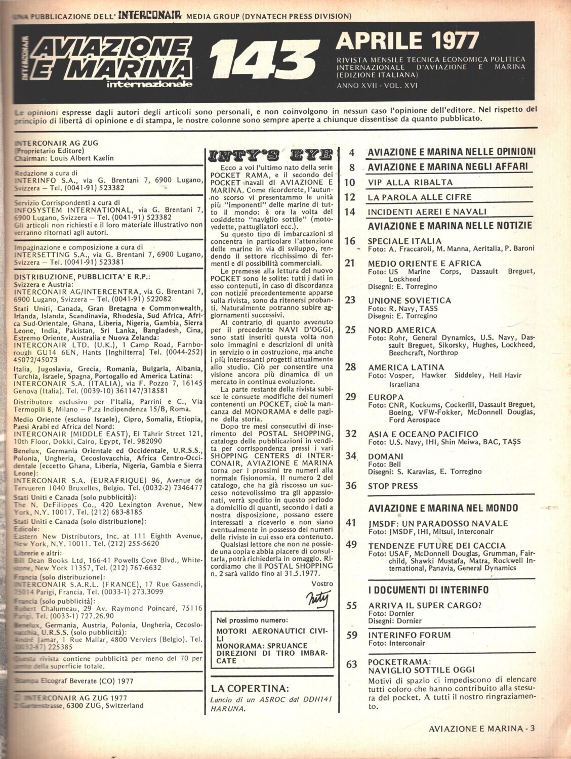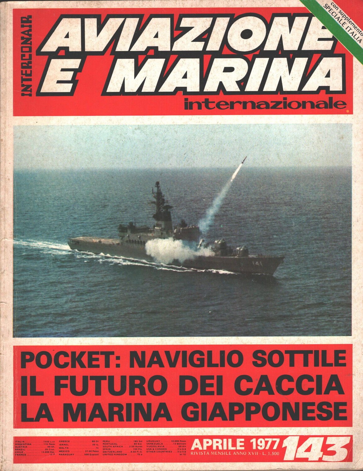 Rivista Aviazione e Marina n. 143 – Aprile 1977 – In copertina lancio di ASROC dal DDH141 Haruna ed. Interconair