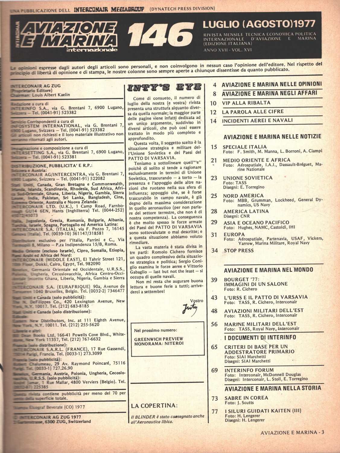 | Titolo: | Rivista Aviazione e Marina n. 146 – Luglio Agosto 1977 – In copertina Blinder ed. Interconair |