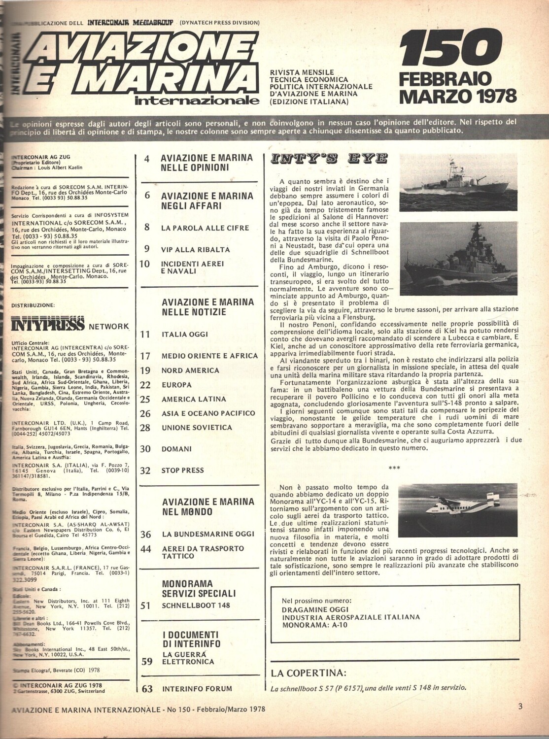 | Titolo: | Rivista Aviazione e Marina n. 150 – Febbraio Marzo 1978 – In copertina Schnellboot S57 (P 6157) ed. Interconair |