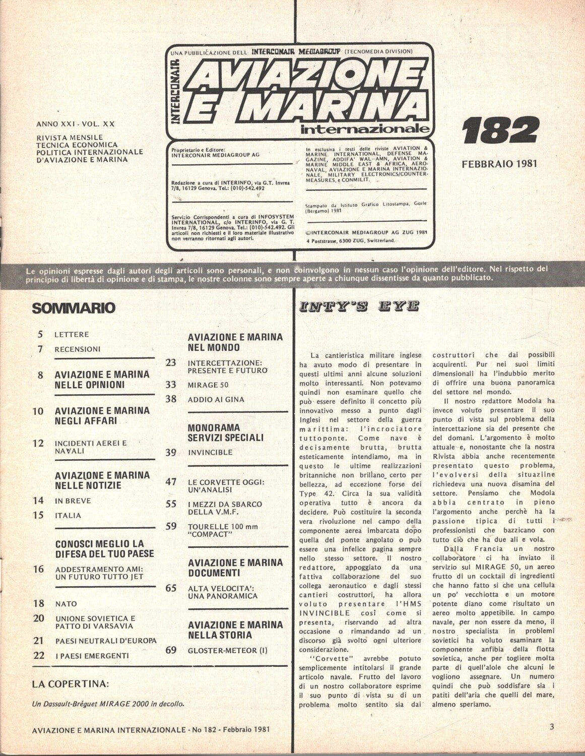 | Titolo: | Rivista Aviazione e Marina n. 182 – Febbraio 1981 – In copertina Dassault Breguet Mirage 2000 ed. Interconair |