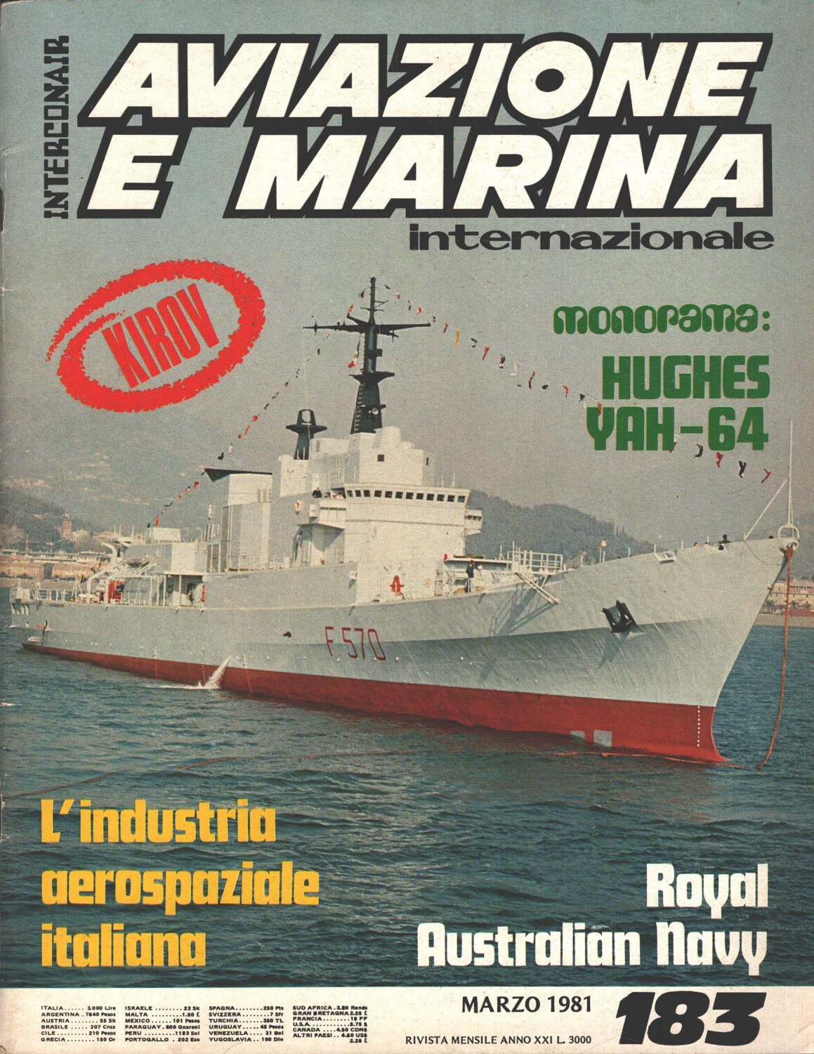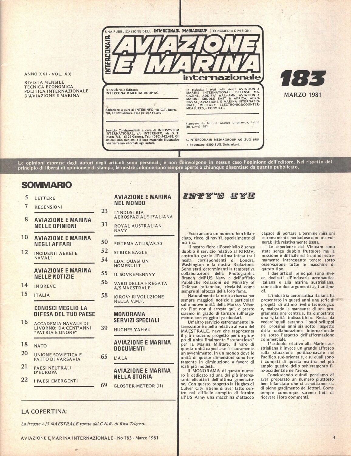 | Titolo: | Rivista Aviazione e Marina n. 183 – Marzo 1981 – In copertina Fregata A/S Maestrale ed. Interconair |