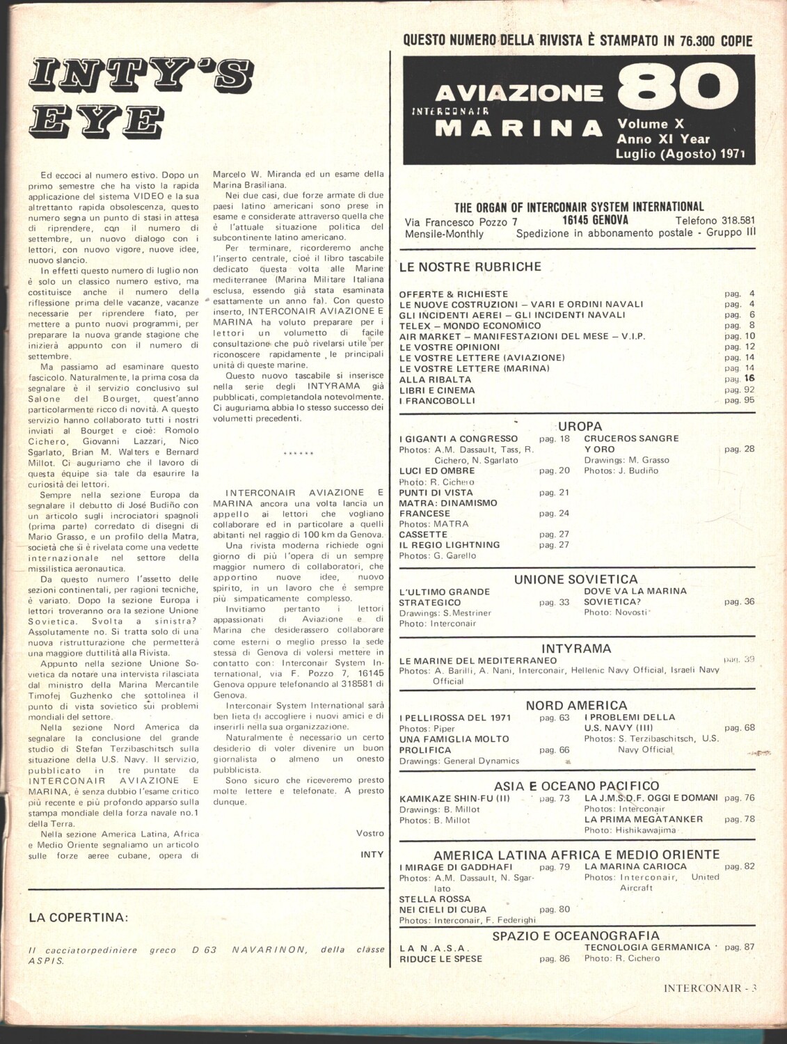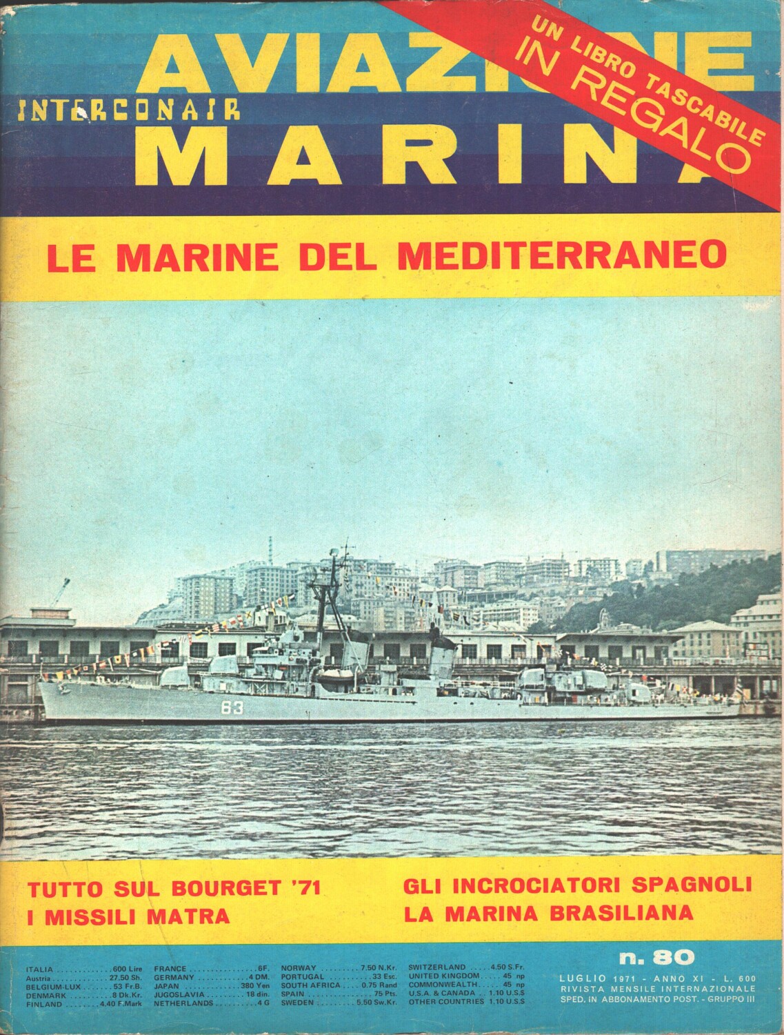 Rivista Aviazione e Marina n. 80 – Luglio 1971 – In copertina Cacciatorpediniere D 63 Navarinon ed. Interconair