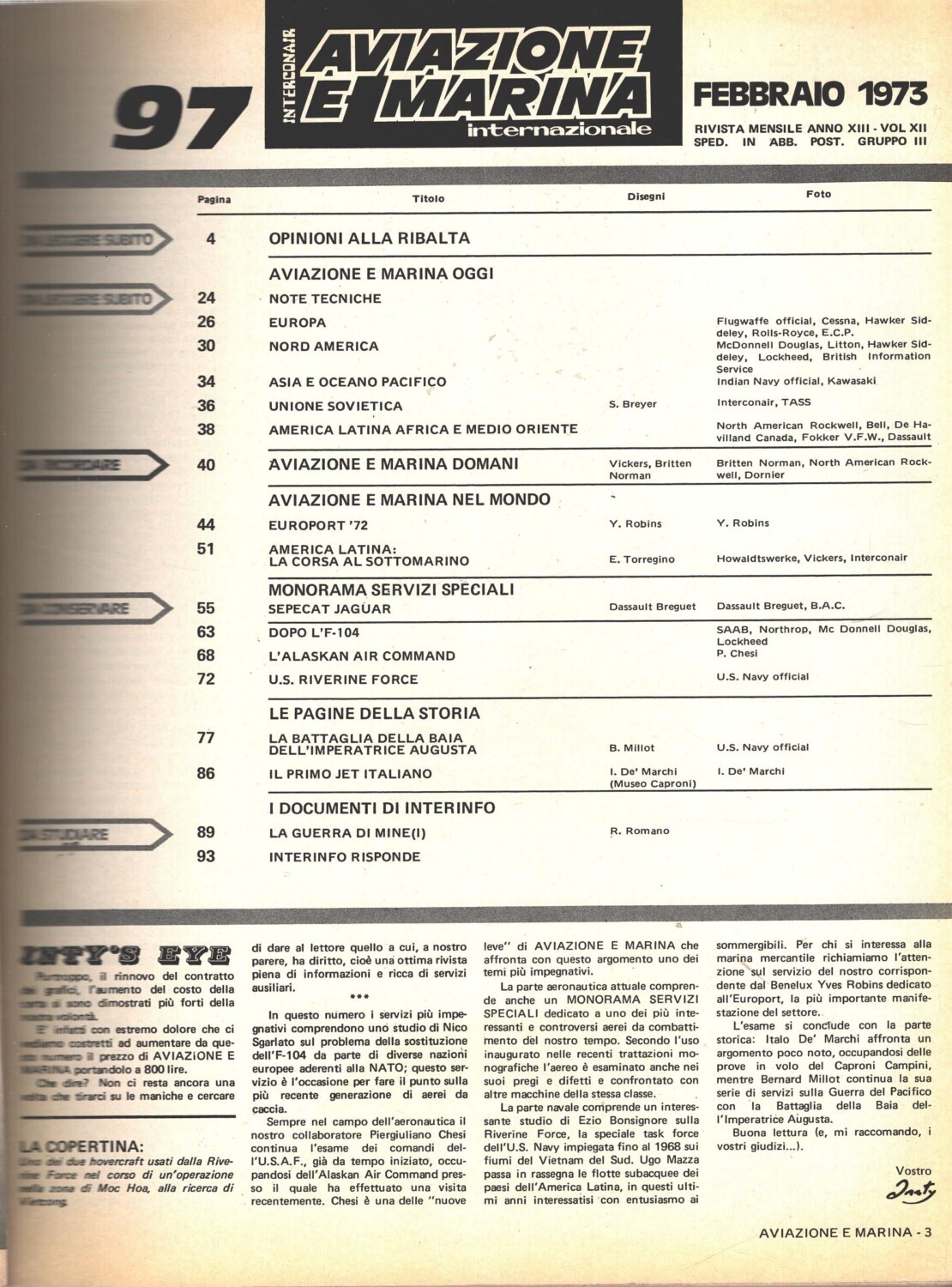 Rivista Aviazione e Marina n. 97 – Febbraio 1973 – In copertina hovercraft Riverine Force ed. Interconair